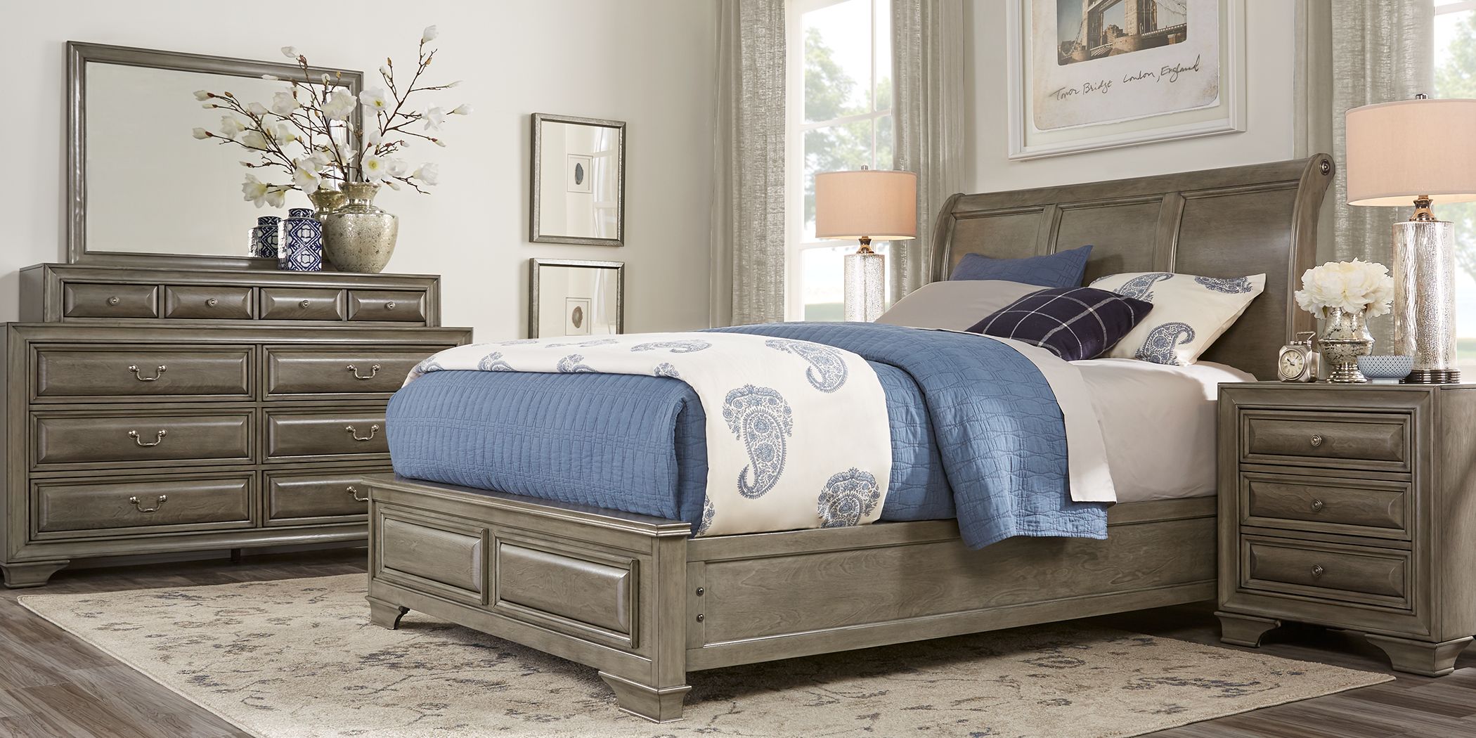 For a stylish bed and nightstand combination look no further than the north shore sleigh bedroom set. 4.6 out of 5 stars. Axel queen solid wood sleigh 5 piece dresser set. On purchases priced at $599.99 and up made with your rooms to go credit card through 7/12/21. Queen size cherry wood sleigh bedroom set. Three hidden drawers within the top frame, jewelry tray inserts, 12 drawers total, top left drawer has a drop front. The san mateo sleigh bedroom set by pulaski furniture. A king bedroom set is the perfect addition to any room filling a space with classic luxurious style. Furnish an entire bedroom, from bed frame to dressers, nightstands, and mirrors. Made of veneers, wood and engineered wood. Elegantly molded framed doors, drawers, mirror frames and bed panels capture the. Browse furniture.com to shop 7 pc bedroom sets and collections. To find more visit us online.